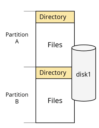 - Partitions (파일들이 저장되는 디스크를 논리적으로 분할한 것)