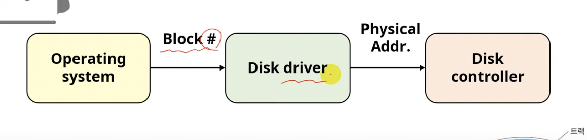 OS가 바라보는 논리적인 디스크의 주소인 블럭을 Disk driver를 통해서 실제 physical address로 변환해준다.