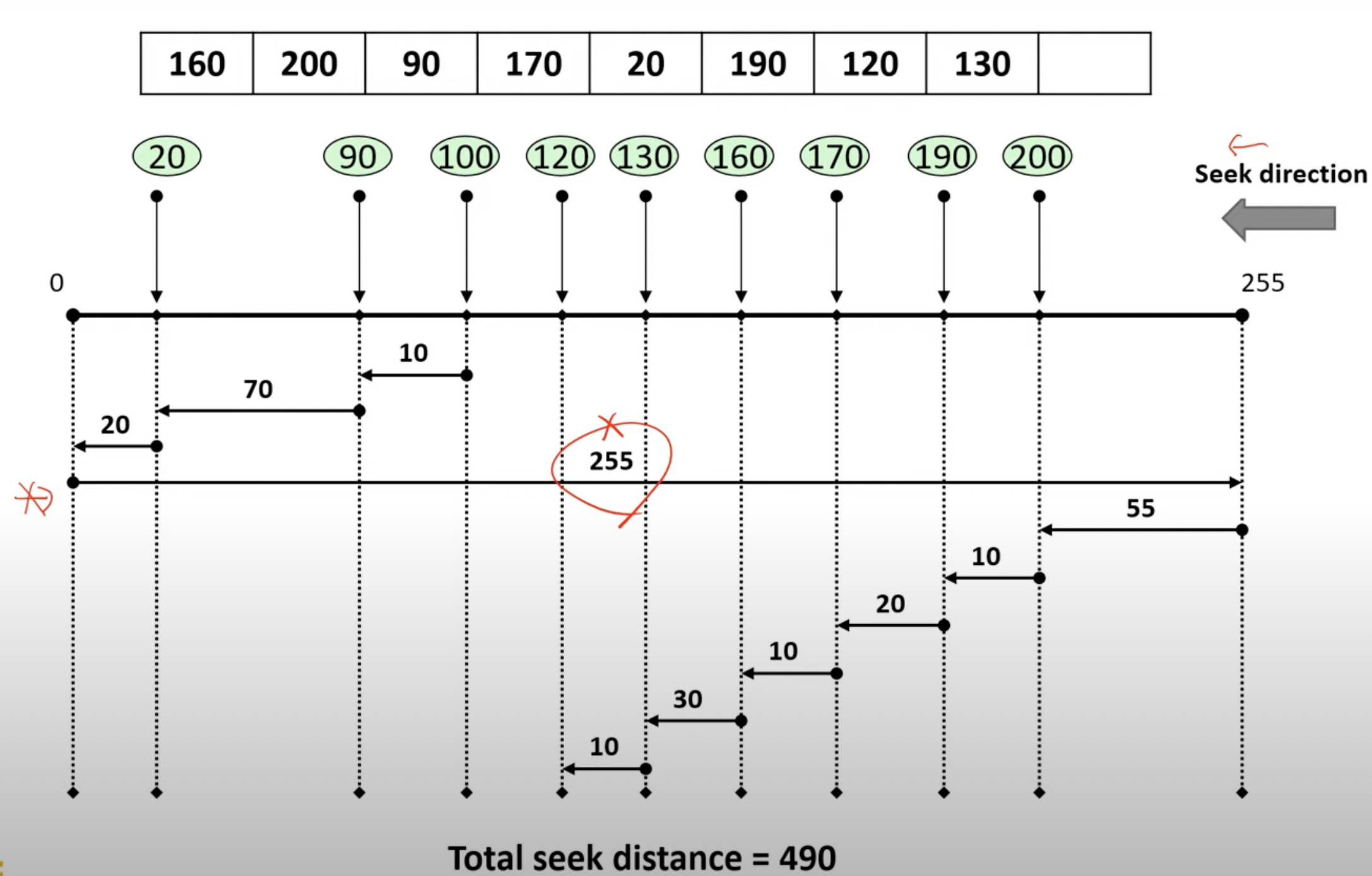 물론 255를 횡단해야하므로 그만큼 단점이있지만 탐색하지않고 헤드가 그냥 움직이는거라 비교적 괜찮다.