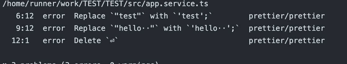 이렇게 github action에서npm run lint를 실행했는데 컴파일 에러가 발생했었다고 알려주네요!!
